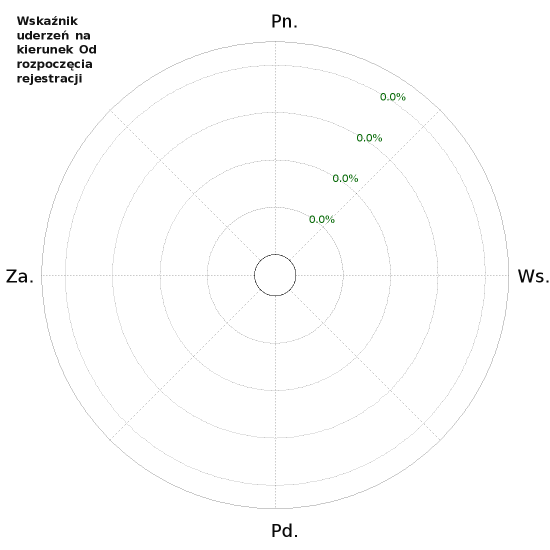 Ten wykres pokazuje wskaźnik uderzeń na kierunkach geograficznych os poczatku zbierania danych